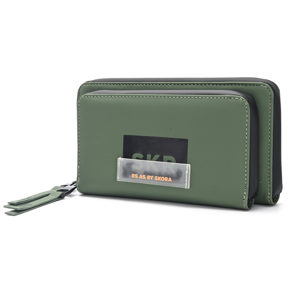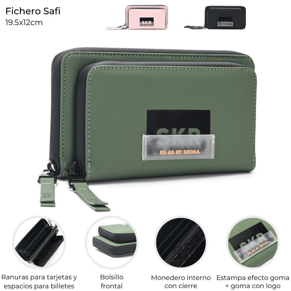 Fichero con ranuras para tarjetas y monedero interno con cierre
