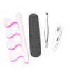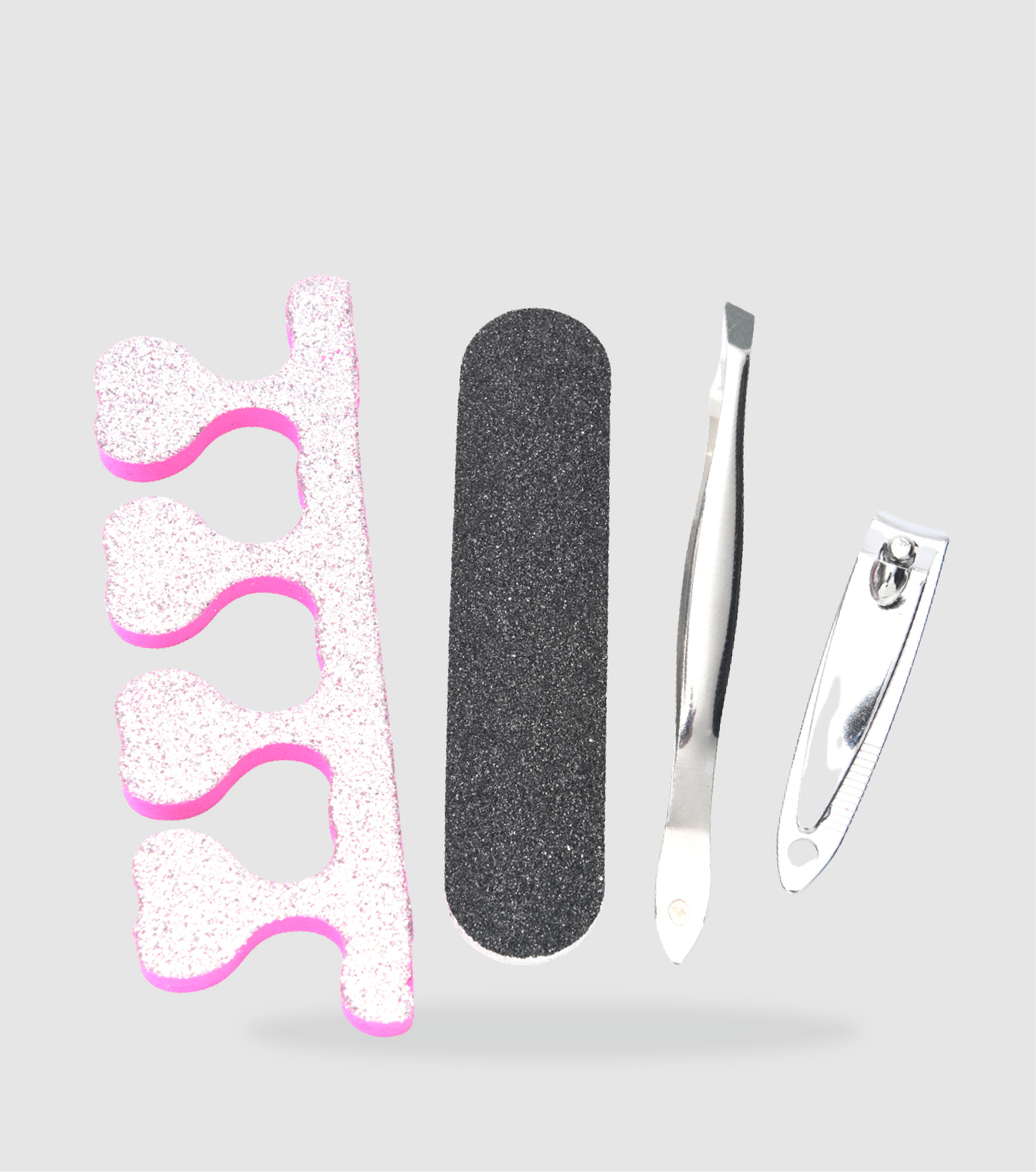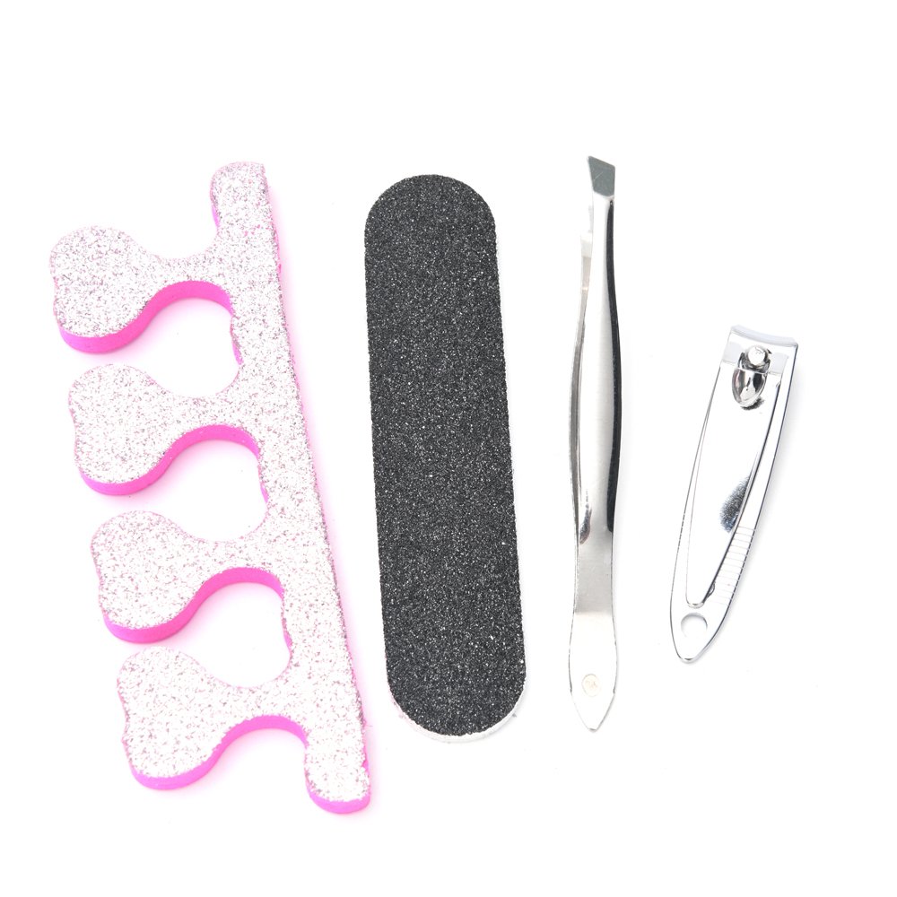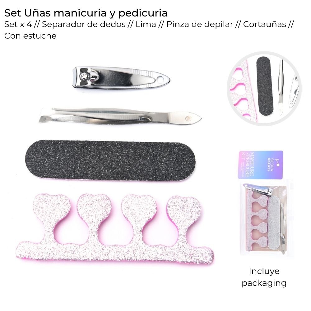 DESCRIPCIÓN Set que incluye separador de dedos, lima, pinza de depilar, corta uñas, con estuche